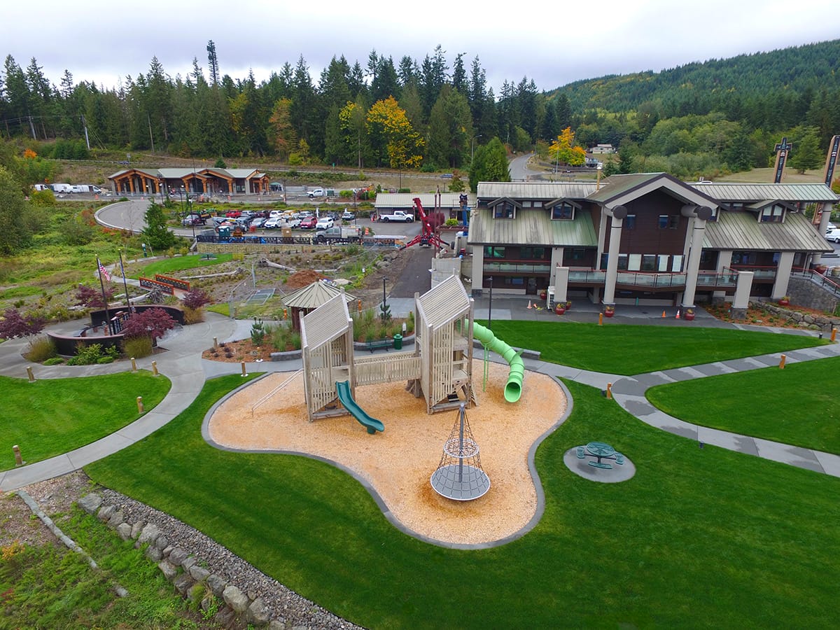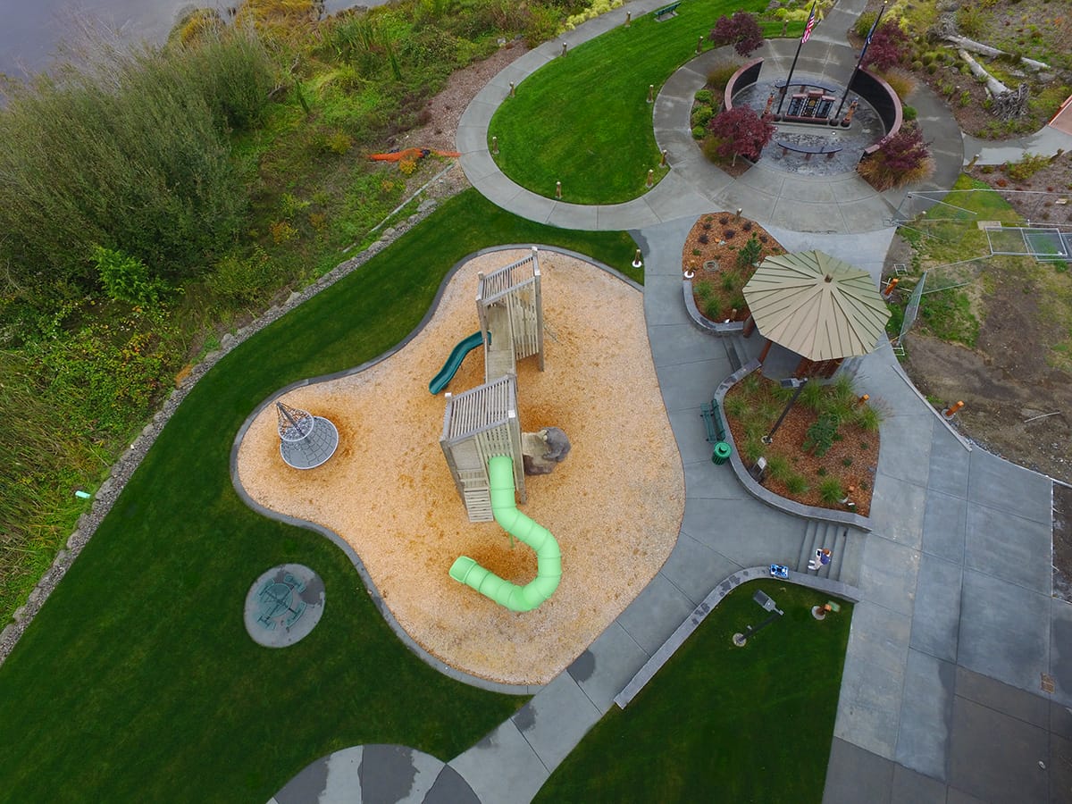 As part of a larger scope of improvements on the campus, a new playground, open space areas and raingarden were designed. The intent was to provide additional and varied opportunities for community of all ages to enjoy the campus. The design was intended to blend the natural and built environments, while also integrating existing structures and facilities on campus.